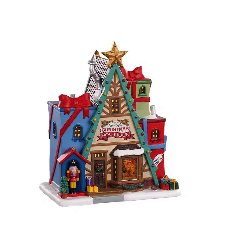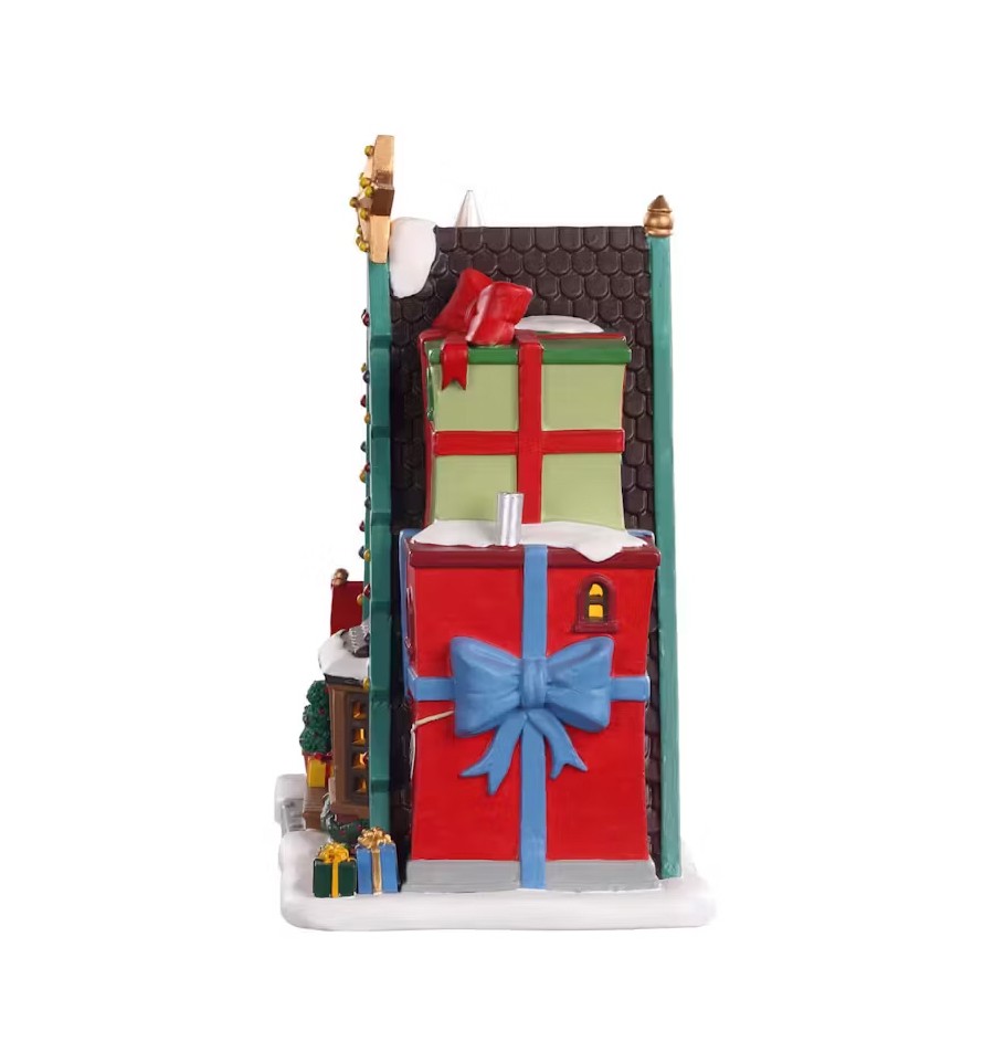 Figures rotate around Santa on the second story