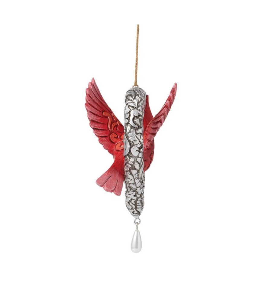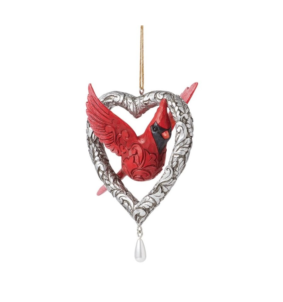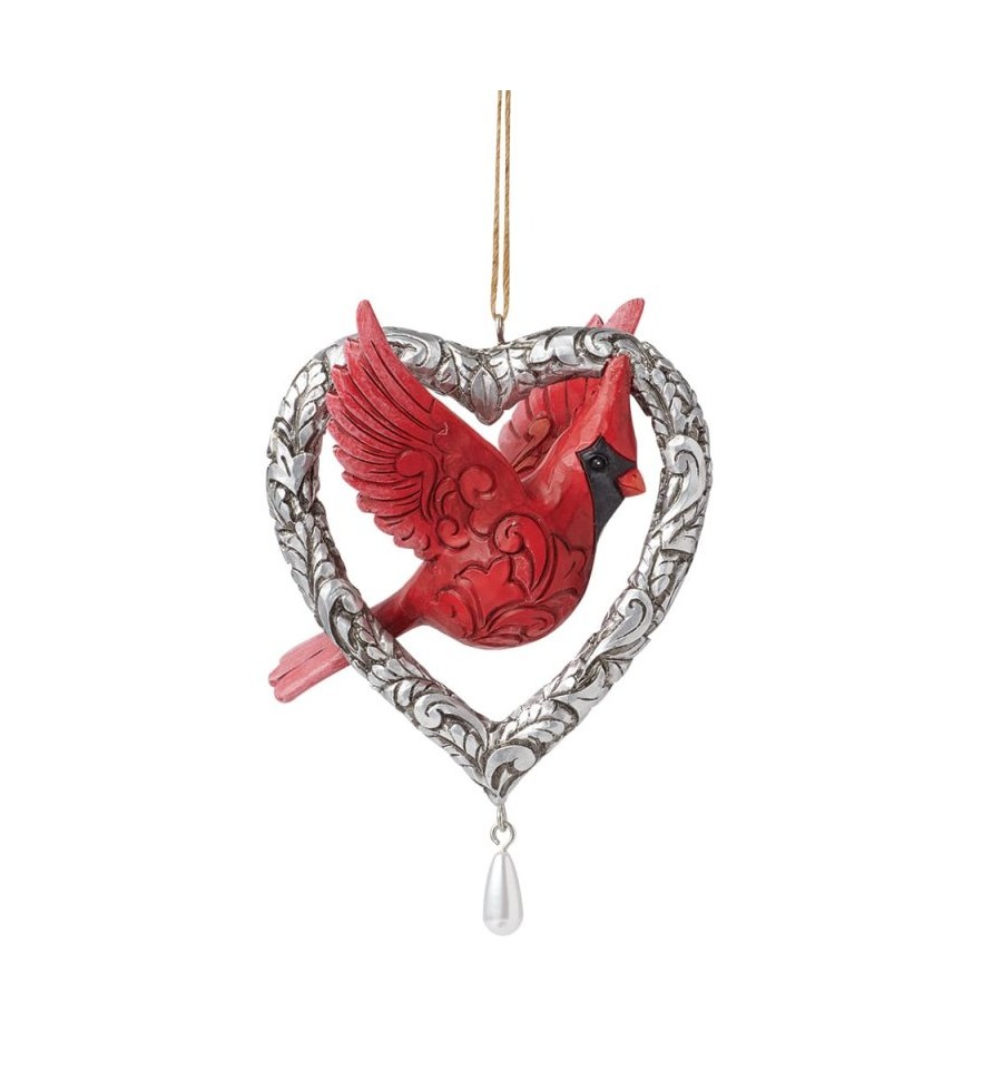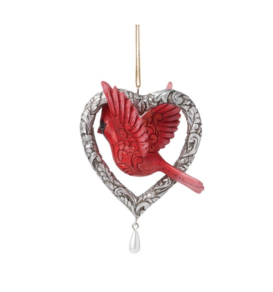 Traditional Heartwood Creek Collection; Wood carved textures and intricately detailed designs. Unique, sometimes surprising combinations of colors - often incorporating a touch of Jim's favorite color - purple. Here we have Santa basket in hand proudly decorating his tree.