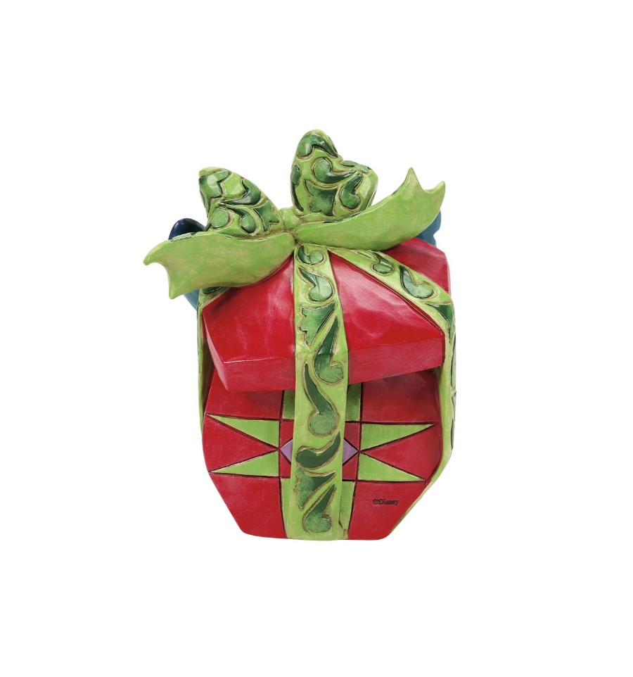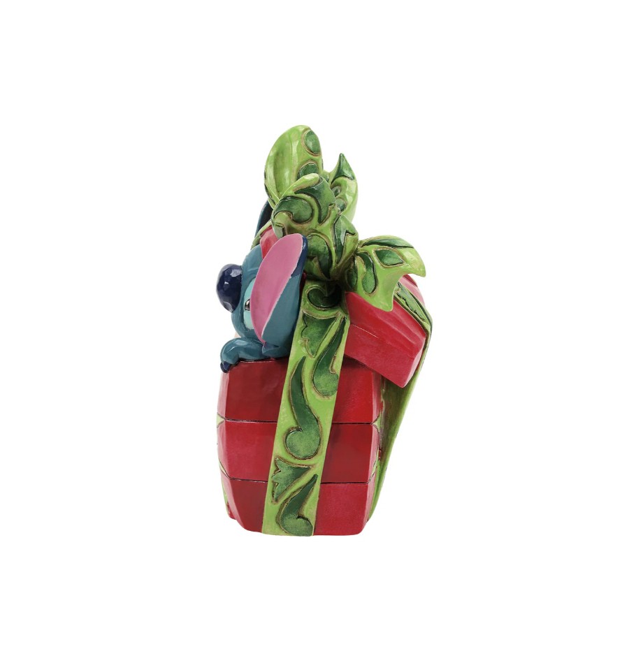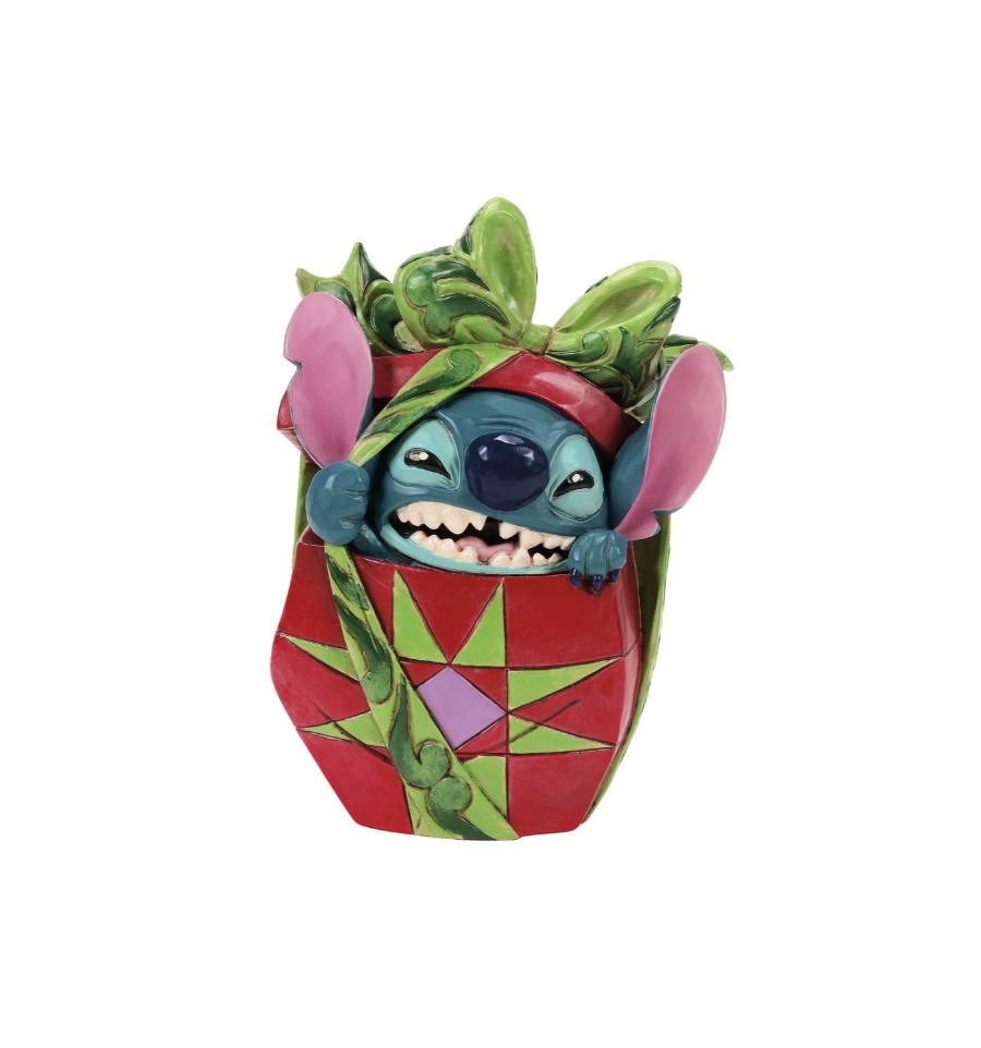 The troublesome Stitch shows his kind side in this figurine as he wraps a Christmas presents for Lilo. Unique variations should be expected as this product is hand painted. Packed in a branded gift box. Not a toy or children's product. Intended for adults only.
