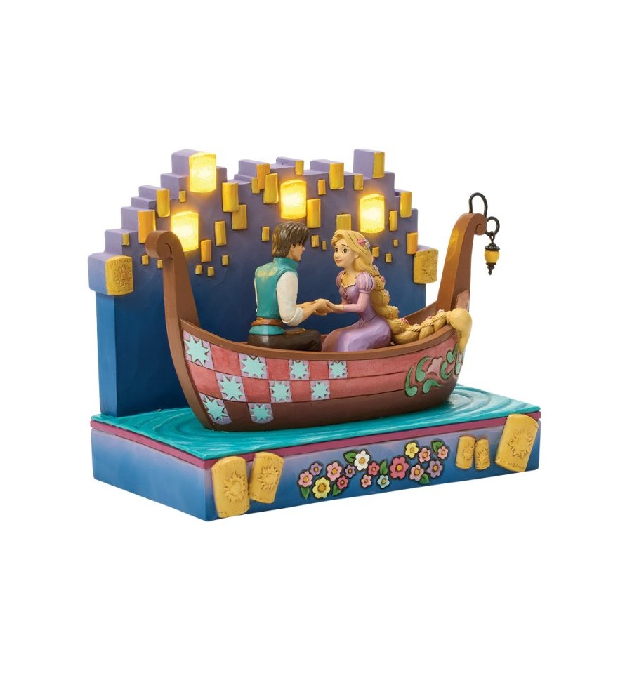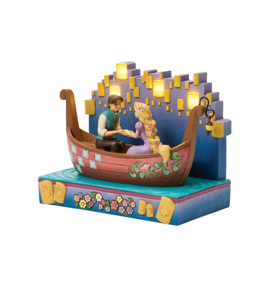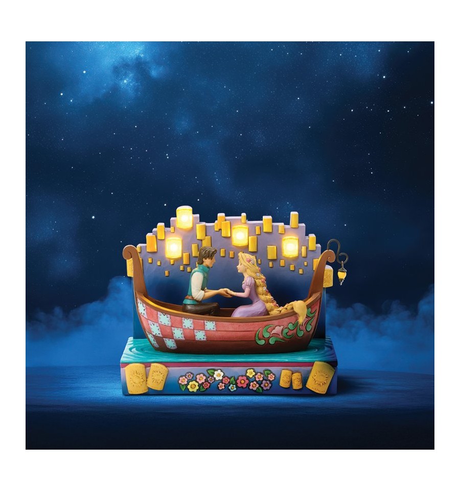 Follow your dreams with this radiant princess. Rapunzel from Disney's Tangled will light up your collection with exquisite details, like her sparkling sleeves, pearls braided through her golden hair and gown with a sun and flower pattern reminiscent of her kingdom, Corona. The figurine is made from cast stone. Each piece is hand painted and slight colour variations are to be expected which makes each piece unique. Supplied in branded gift box. Not a toy or children's product. Intended for adults only.