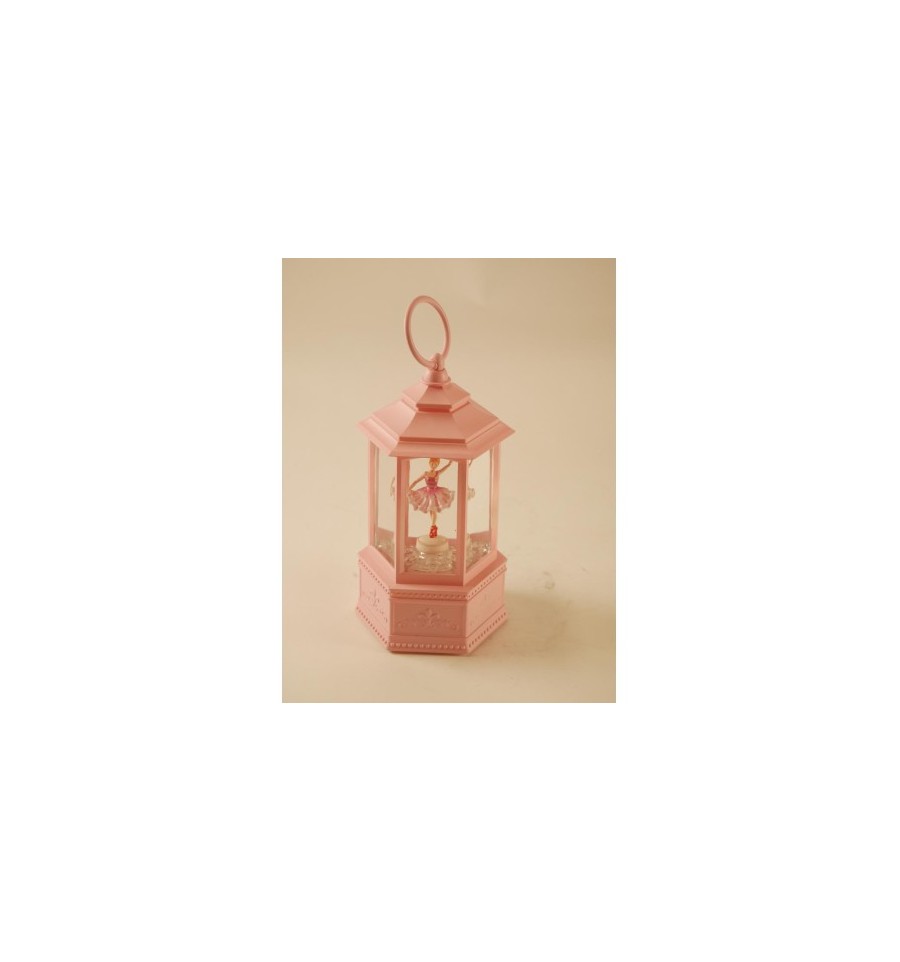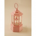White glitter lantern with sledge scene. Plays a medley of 8 different Christmas melodies while it light up and the glitter swirls. 3 way switch: light & glitter, light, glitter & music, off. Battery operated. Height 25,5 cm