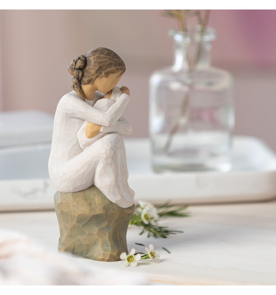 Willow Tree is an intimate line of figurative sculptures representing sentiments of love, closeness, healing, courage, hope...all the emotions we encounter in life. "I remember when my husband and daughter or son played, laughed and tumbled together on the rug...or when all the grandkids piled onto my dad's back for horse rides...those moments of spontaneous play, of cuddling, tickling, being present together , became the foundation for their close relationships throughout the years" - Susan Lordi. The item is made in cast stone and hand-painted with lead-free paint. Supplied in a branded gift box and a gift tag with sentiment 'We've only just begun...forever my little one'. Not a toy or children's product. Intended for adults only.