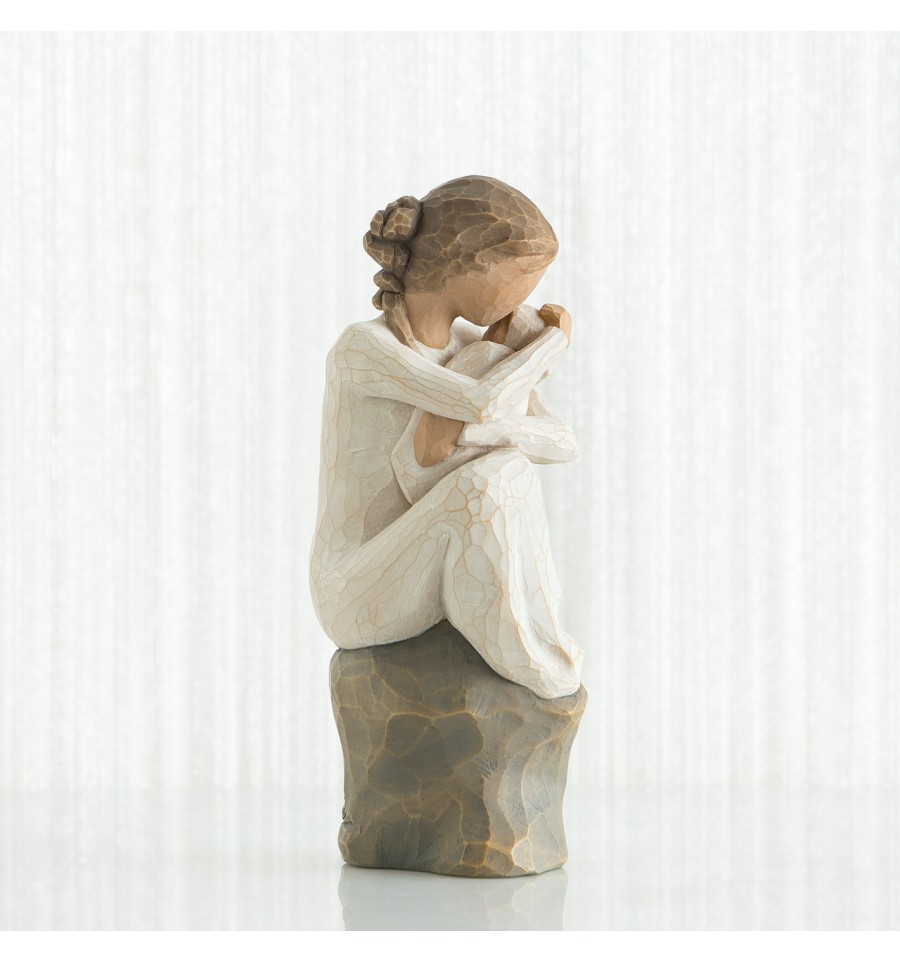 “Guardian represents the overwhelming feelings of motherhood, and the desire to protect your new baby forever. The image of an infant cradled closely in her mother’s arms is a symbol of the tremendous feelings of love a mother experiences when holding her new child. This figure could suggest a guardian spirit of protection. She could also be comforting to someone who has lost a child; a reminder of the love and caring a mother always feels, regardless of where her child is. I used the word ‘thee’ in the sentiment as an intimate way of talking to an infant. I think the word has a poetic sound and shows reverence and tenderness. It’s the sort of word reserved for someone you love” –Susan Lordi
