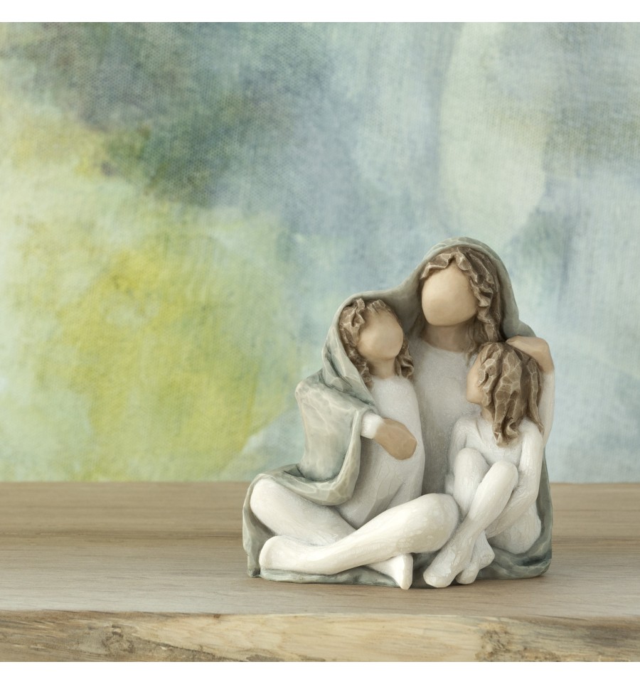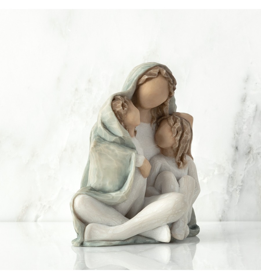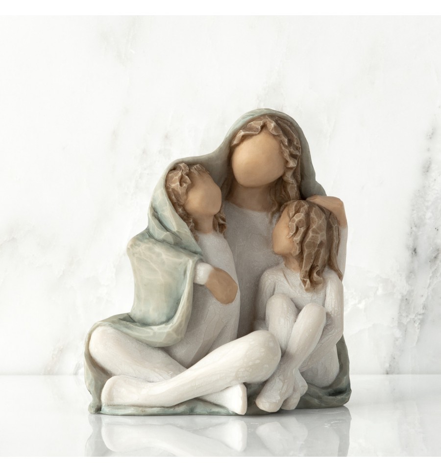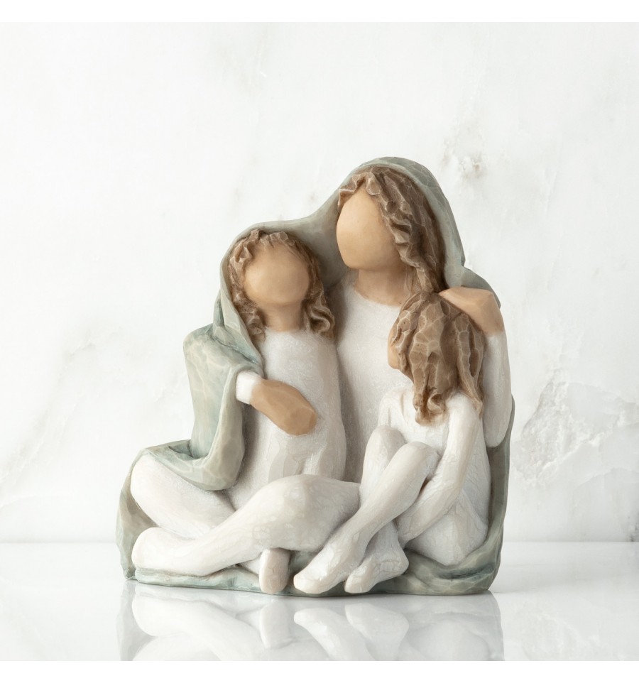 Close together, we three. Susan Lordi wants to represent time spent with family in lockdown and playing with make believe with items in the home. ''Make believe play, in a blanket fort or under the covers at bedtime, are some of my favourite memories of being a young mother with two little ones. Their imaginations are so fresh and free - It's fun to let go and get on the same level with them. Rewarding moments of being cozy with my children ... and now my grandchildren - Susan Lordi All of our new Willow Tree pieces come in recycable packaging