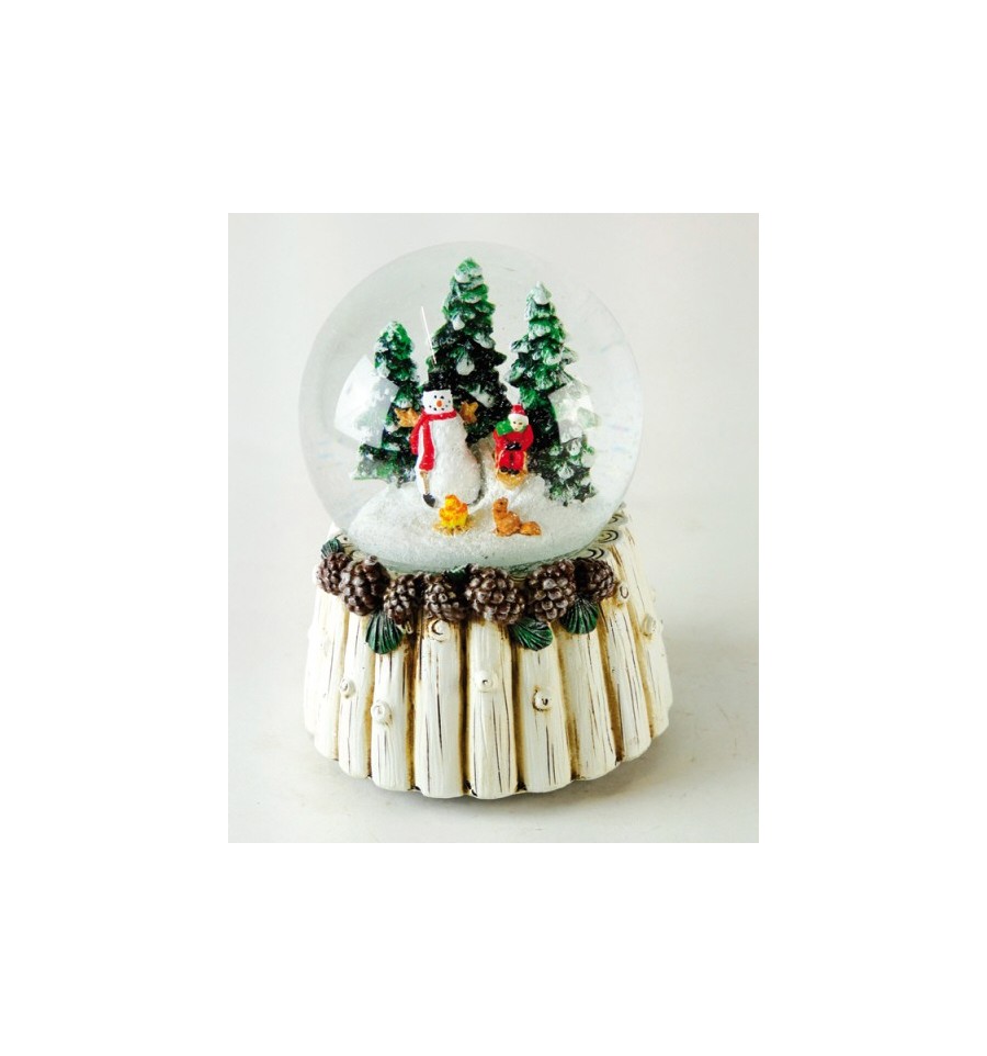 Globo de neve 10 cm Boneco de neve com criança na floresta.