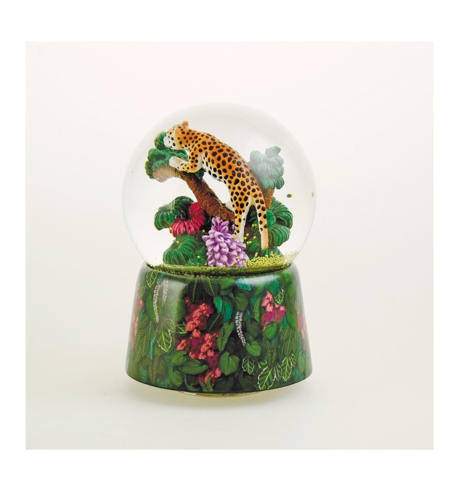 Globo brilhante de 10 cm com um leopardo num ramo da selva.