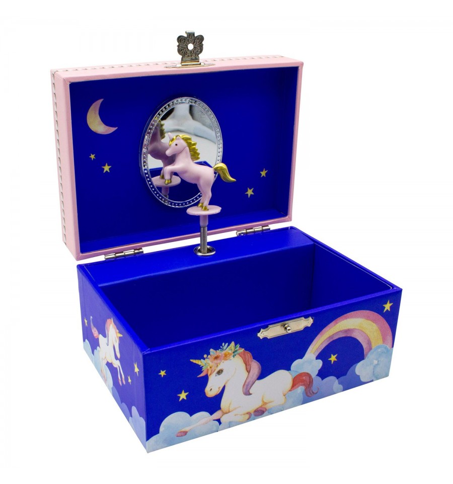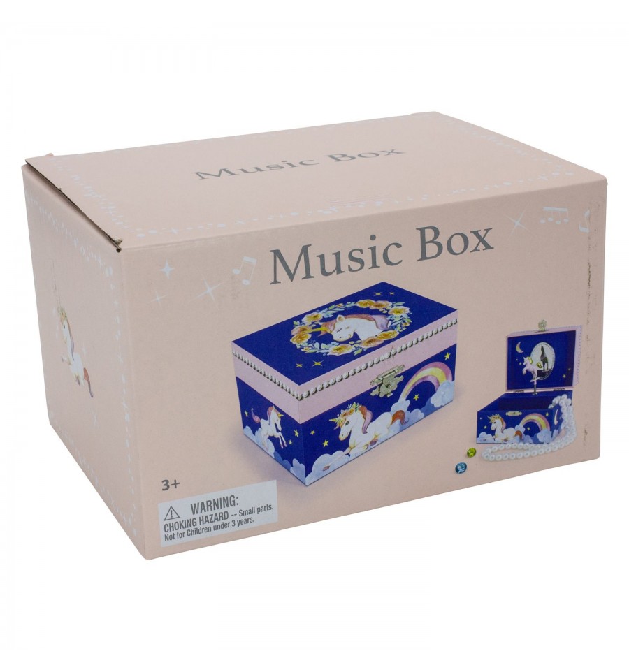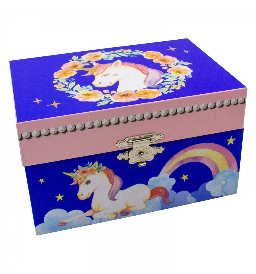 Unicórnio com flores Azul - Caixa de Música