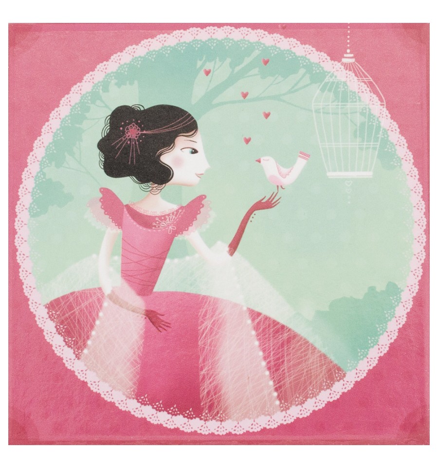 Princesa Rosa com Passarinho - Caixa de Música