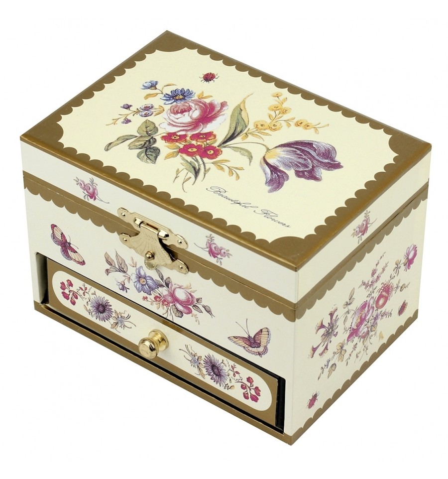Flores - Caixa de Música para Joalharia - Presente Ideal para Meninas - Música de Romeu e Julieta - Amarela
