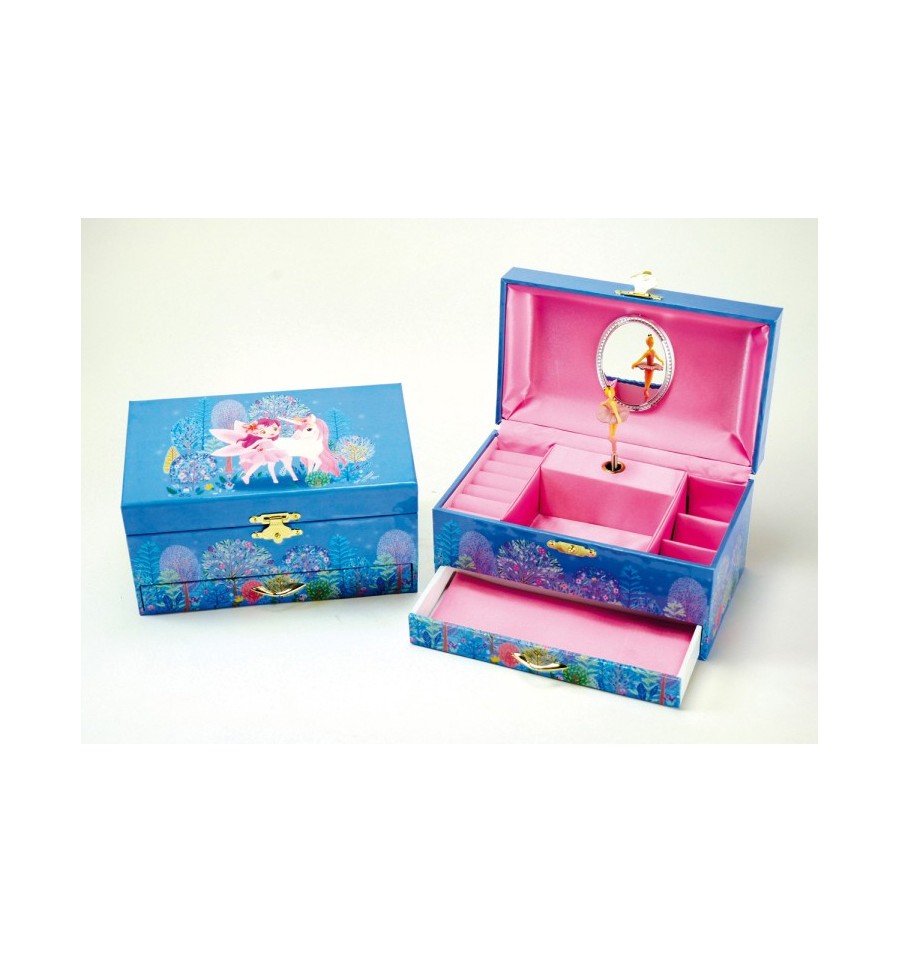 Se abrir a tampa, aparece uma fada giratória em frente a um espelho e soa a melodia da “Sonata ao Luar”. A caixa é ideal para colecionar pequenos tesouros, pois possui um compartimento grande e uma gaveta extra no seu interior.