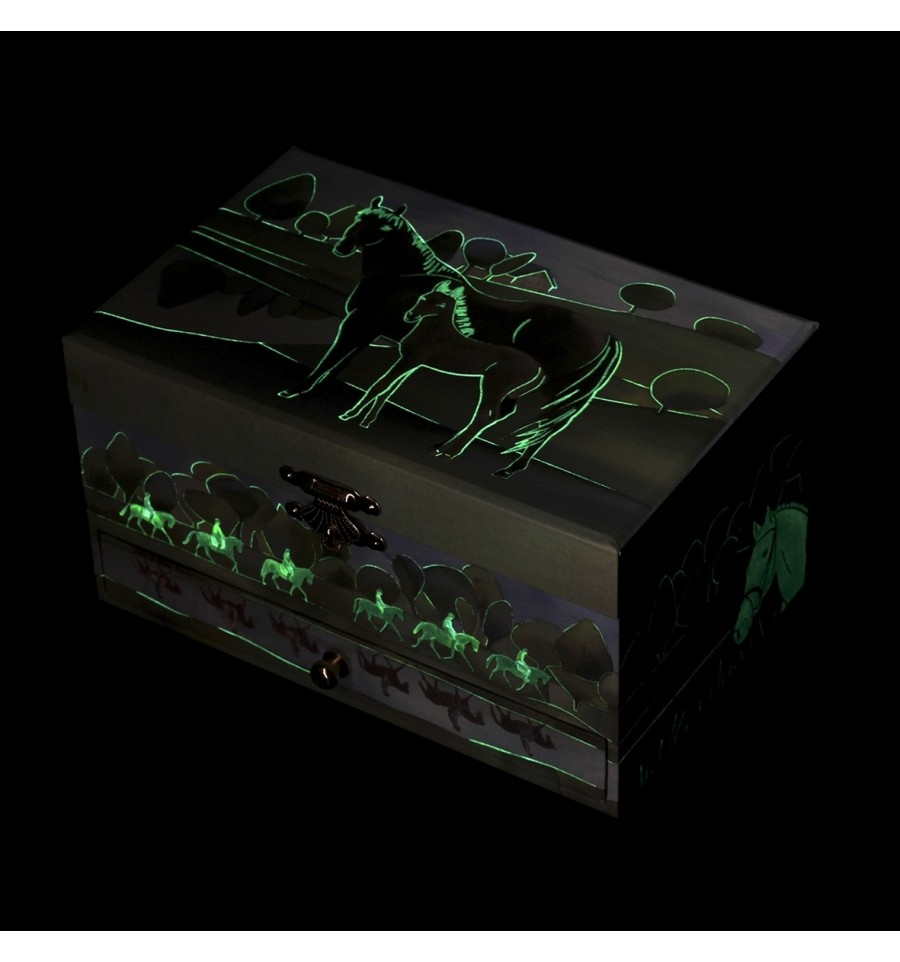 Normandy Horse - Caixa de Música para Joias - Presente Ideal para Meninas - Fosforescente - Brilha no Escuro - Toca "Beautiful Dreamer" - Verde