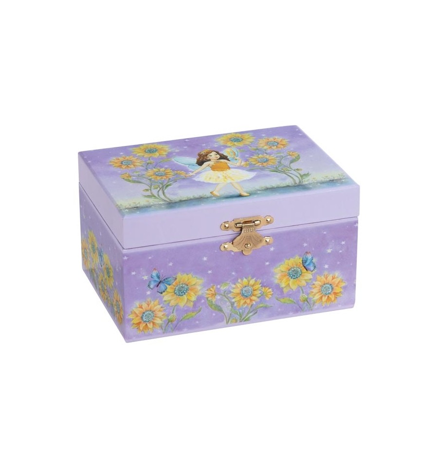 Imperdível para todos os amantes de fadas! Esta caixa tem espaço para muitas joias e, ao ser aberta, soa a melodia "O Lago dos Cisnes" e a fada começa a dançar.