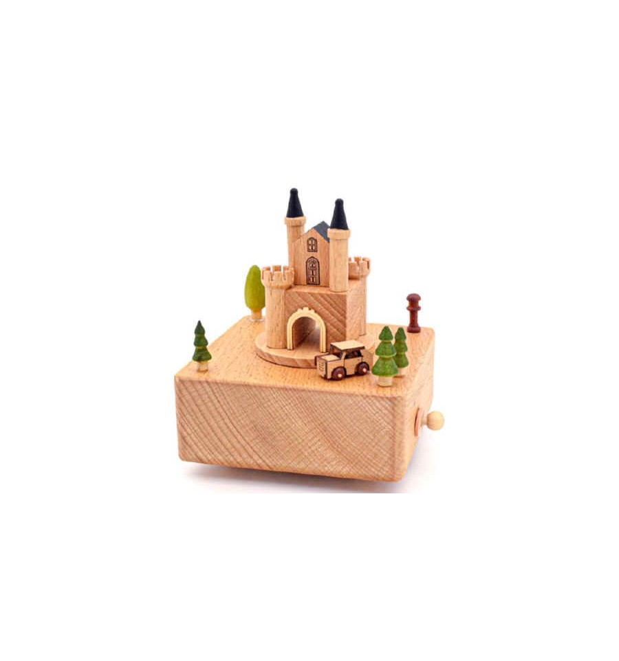 Castelo com carro em Madeira - Caixa de Música