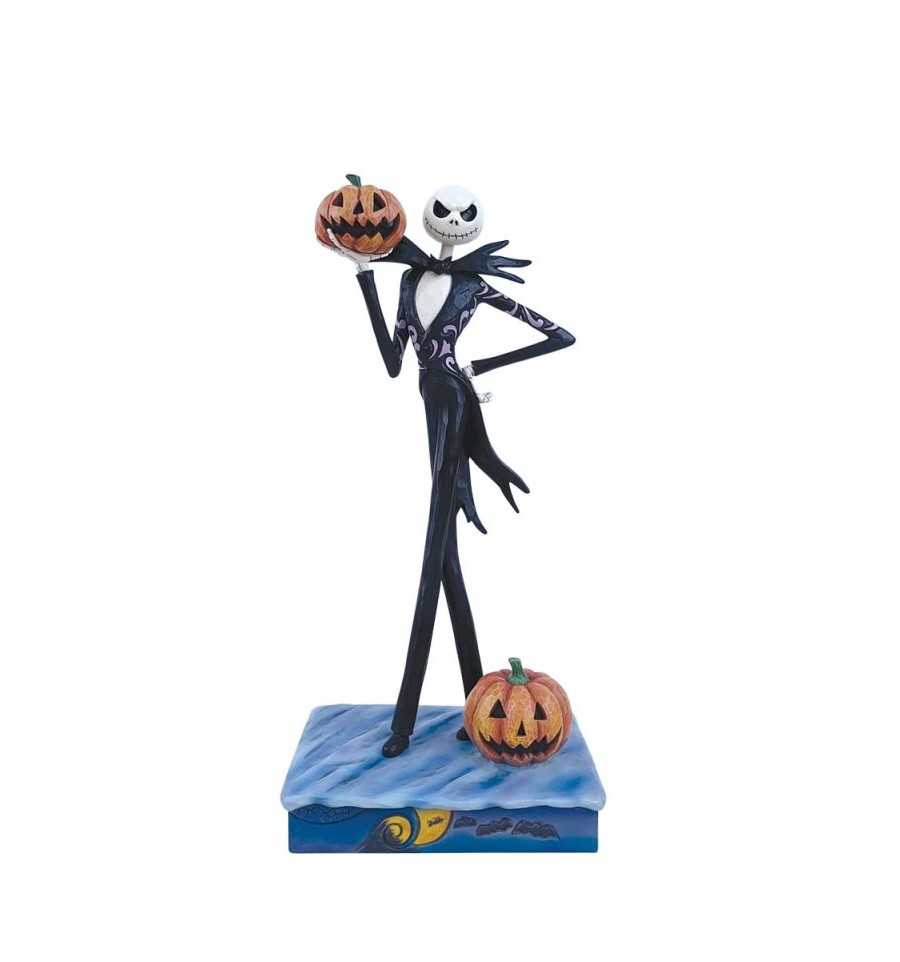 Neste cativante design de Jim Shore, Jack Skellington, vestido com um impressionante fato preto e branco, esbanja charme com um sorriso malicioso. Leve para casa os mais recentes designs de O Estranho Mundo de Jack