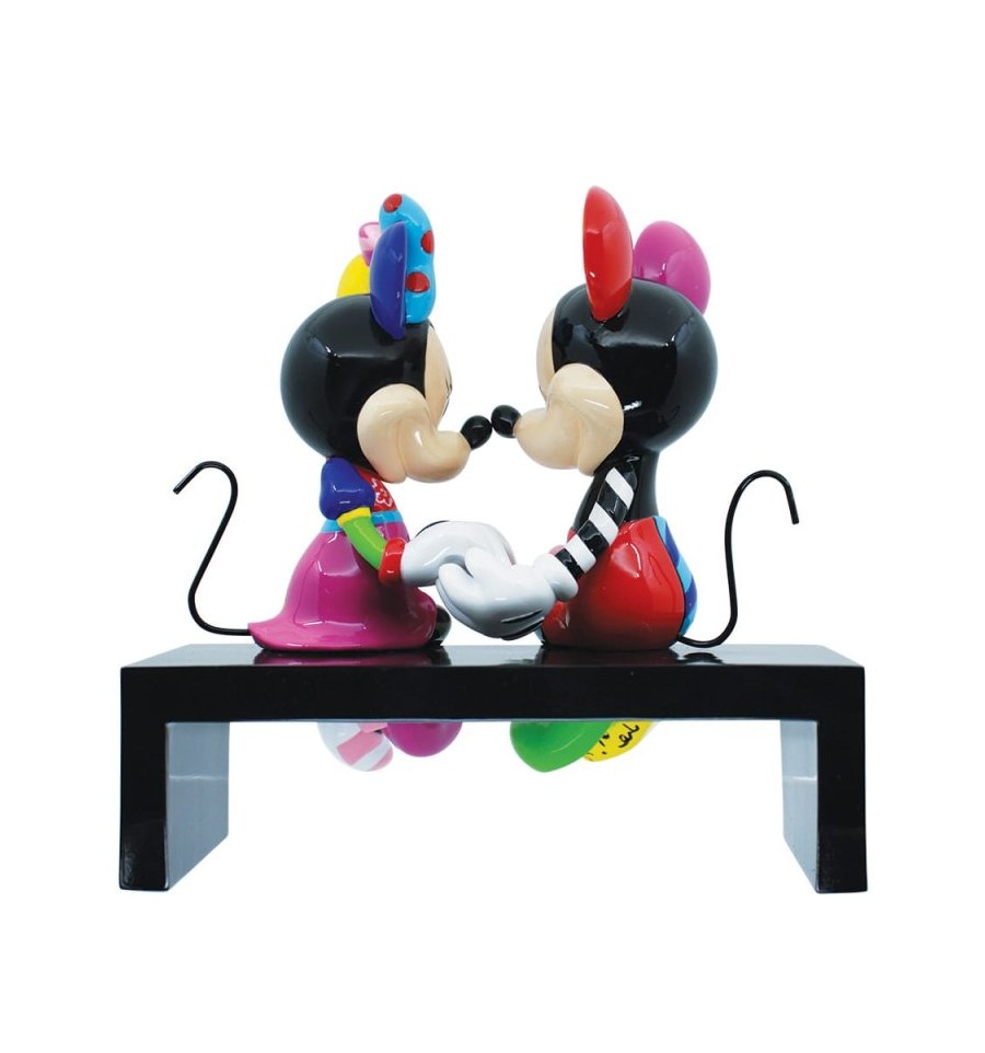Celebre o amor eterno com a estatueta Mickey e Minnie apaixonados de Romero Britto. Com as cores vibrantes e os padrões marcantes característicos de Britto, esta peça encantadora capta o icónico casal da Disney num abraço carinhoso, tornando-se um excelente presente para casamentos e Dia dos Namorados.