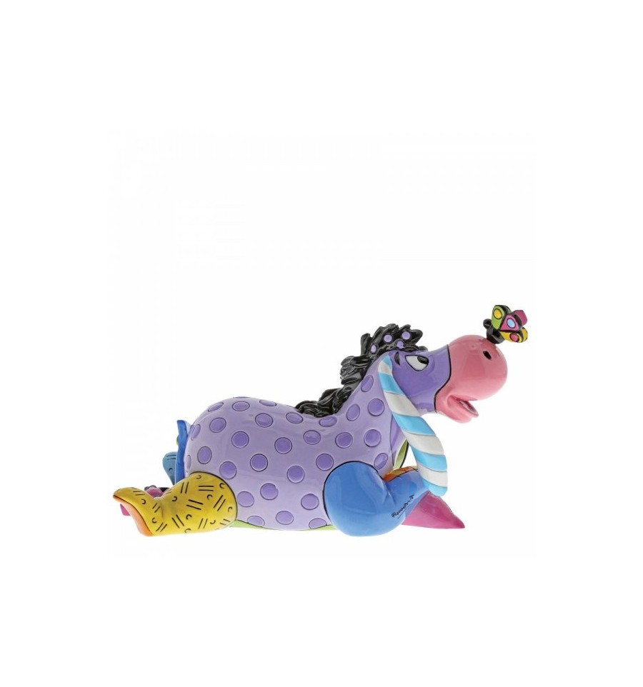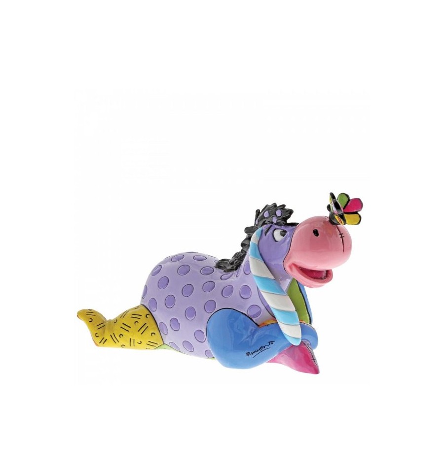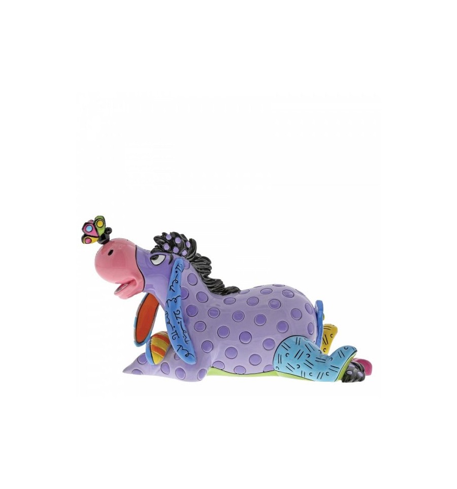 O Eeyore gosta da natureza e olha com curiosidade para a borboleta pousada no seu nariz. Romero Britto dá uma dose de otimismo ao nosso burro sombrio favorito, reimaginando o Bisonho numa bonita lavanda e lindas bolinhas. Feito de pedra fundida, embalado numa caixa de oferta com janela da marca. Devem ser esperadas variações únicas, uma vez que este produto é pintado à mão.