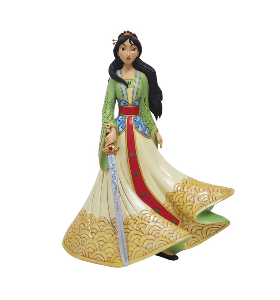 Este requintado busto de princesa de luxo Jim Shore apresenta Mulan no seu melhor traje, carregando uma espada com bravura e força. Com maquilhagem tradicional e símbolos chineses valorizados, cativa com beleza, legado e coragem.