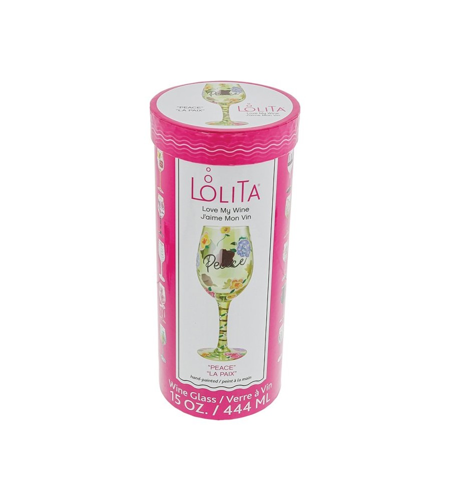 Esta taça em forma de flor combina uma mensagem simples, mas poderosa, com o seu toque. Dê um brinde à Paz com este copo de vinho de 425 ml da Lolita. Com elegantes tons de verde e pétalas pintadas, sentirá a harmonia à sua volta a cada gole. As taças Lolita combinam detalhes pintados à mão com mensagens ousadas que o ajudam a celebrar qualquer ocasião com estilo. Vem numa bonita caixa de oferta com a assinatura da Lolita pintada sob a base da taça. Feita em vidro soprado artesanal. Lavar apenas à mão.