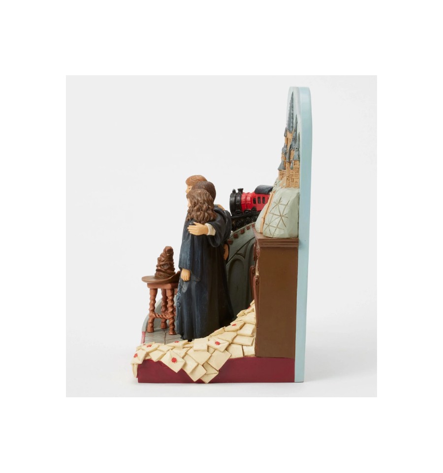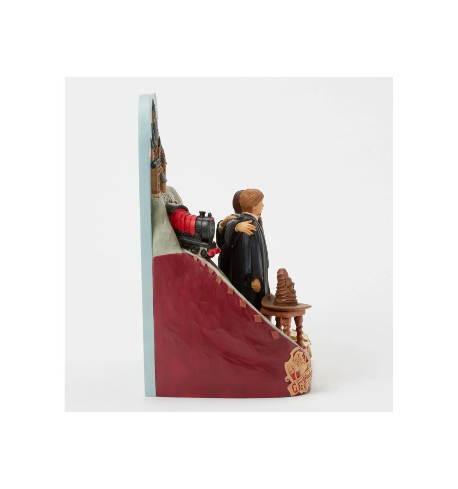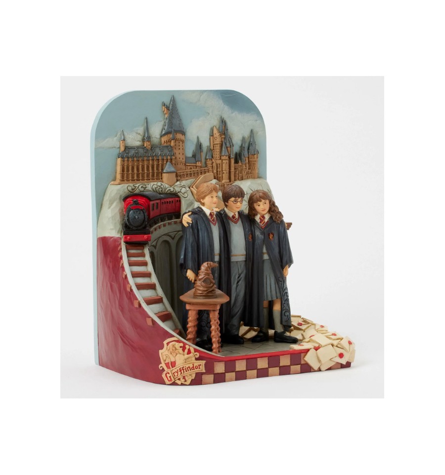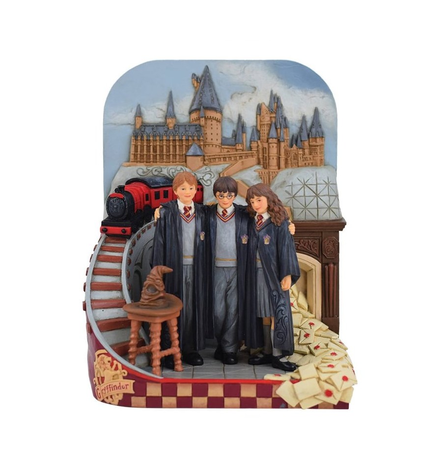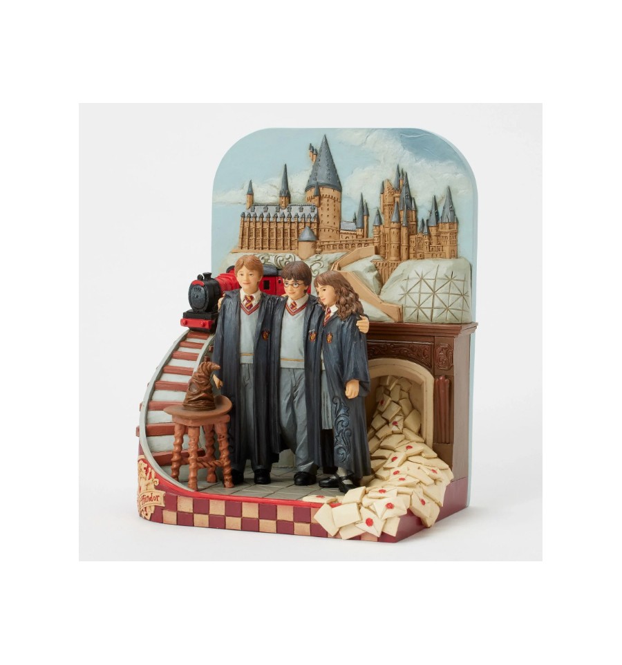 Esta encantadora cena de Jim Shore dá vida à magia de Hogwarts com Harry, Rony e Hermione juntos nas suas vestes de Gryffindor à porta do icónico castelo. O design inclui o Expresso de Hogwarts, letras voadoras e o Chapéu Seleccionador.