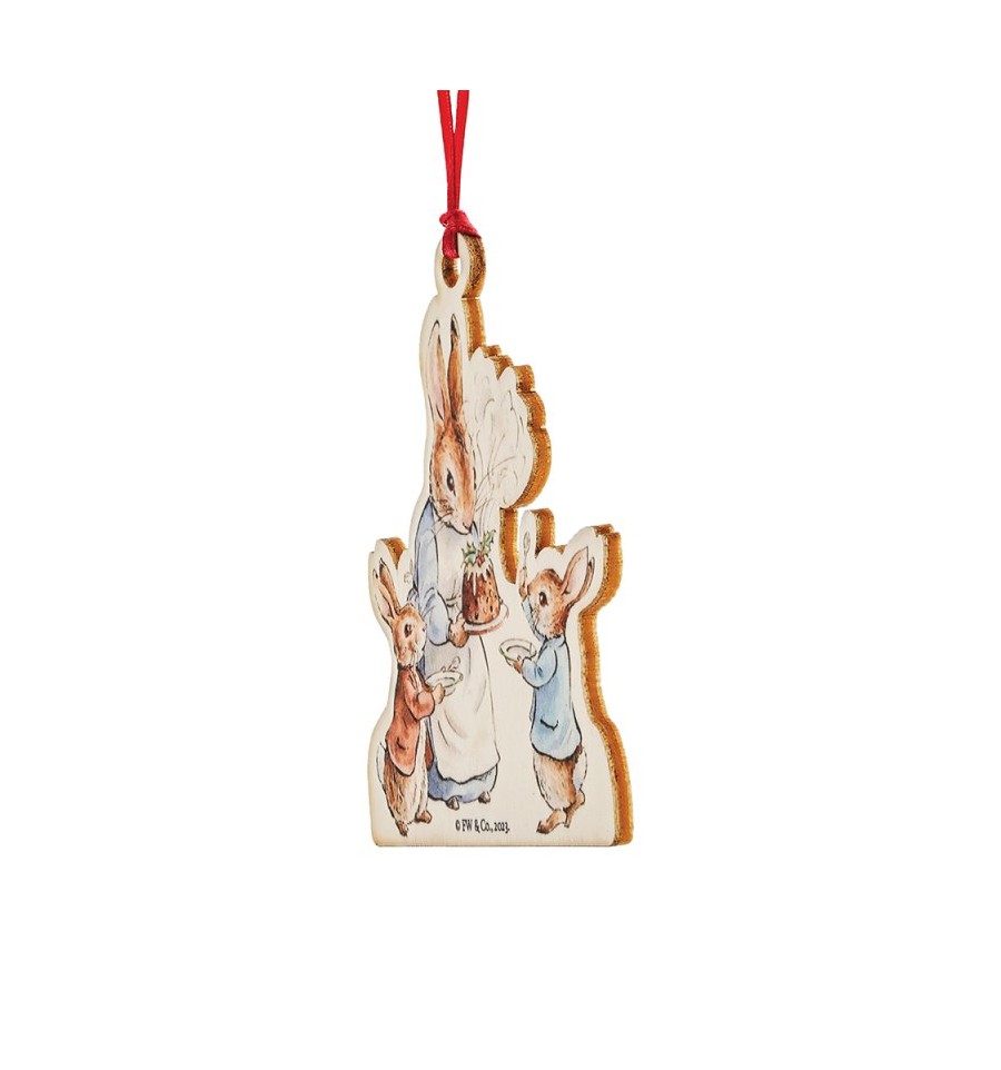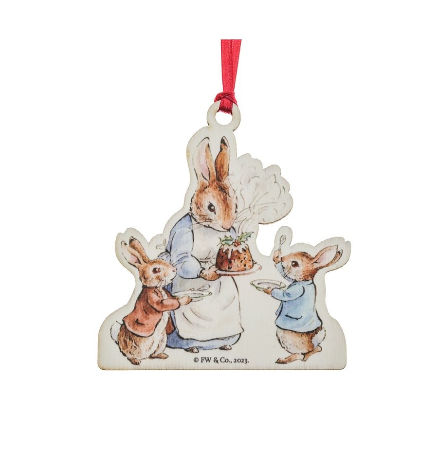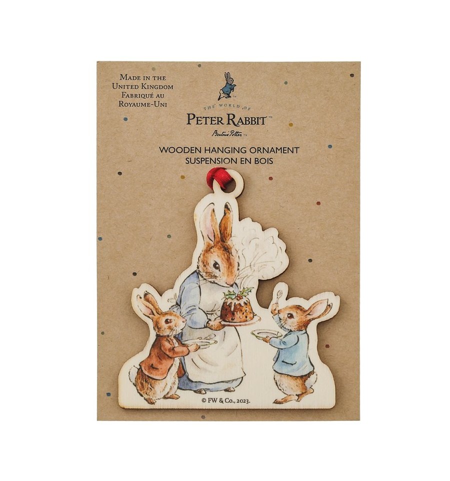 Este enfeite de madeira para pendurar da Sra. Coelho com um pudim de Natal é um presente verdadeiramente único. Este artigo foi fabricado no Reino Unido utilizando madeira compensada certificada e embalagem de cartão de origem sustentável.