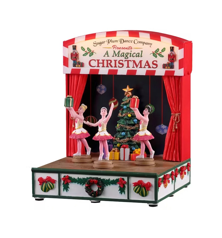 A Companhia de Dança Sugar Plum apresenta "Um Natal Mágico". Este espetáculo apresenta um palco com três bailarinas a dançar, rodopiando alegremente ao som da música. As bailarinas seguram presentes enquanto giram no palco em frente a uma árvore de Natal decorada.