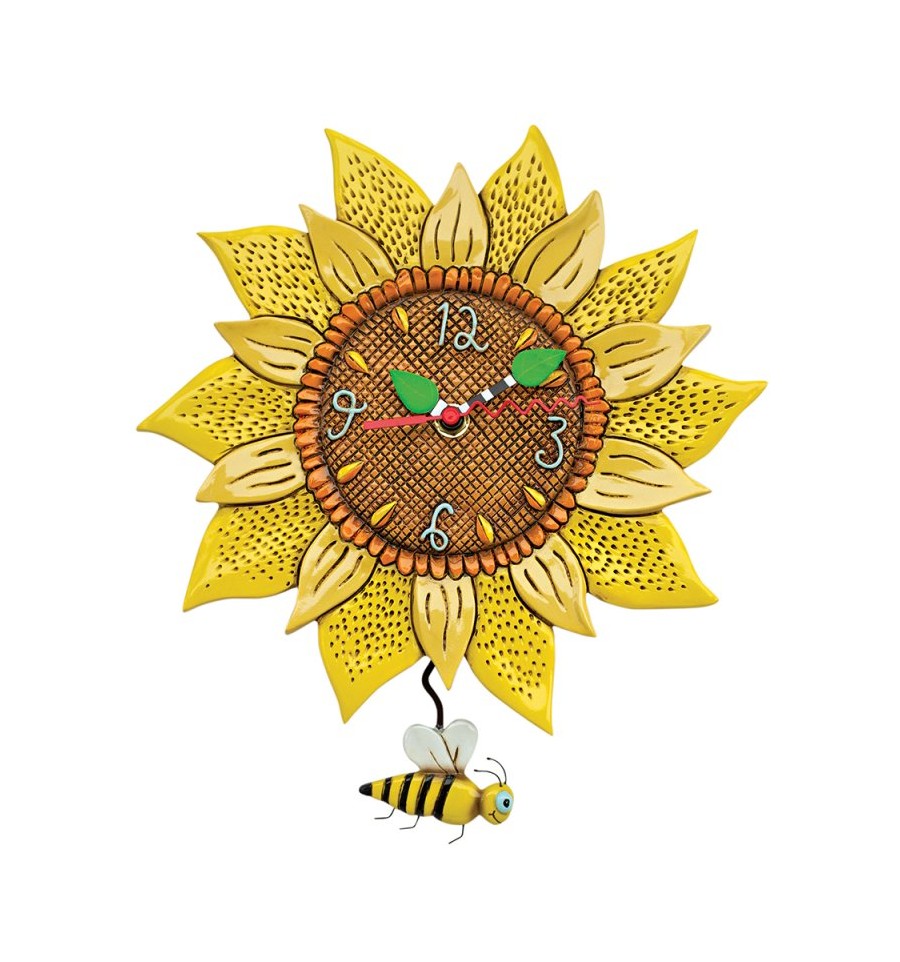 Adora girassóis tanto quanto nós? São tão vibrantes e alegres. O seu amarelo brilhante, as cores ensolaradas, os detalhes de sementes castanhas e o delicado pêndulo de abelha são detalhes encantadores neste relógio pintado à mão. Design exclusivo de Michelle Allen.
